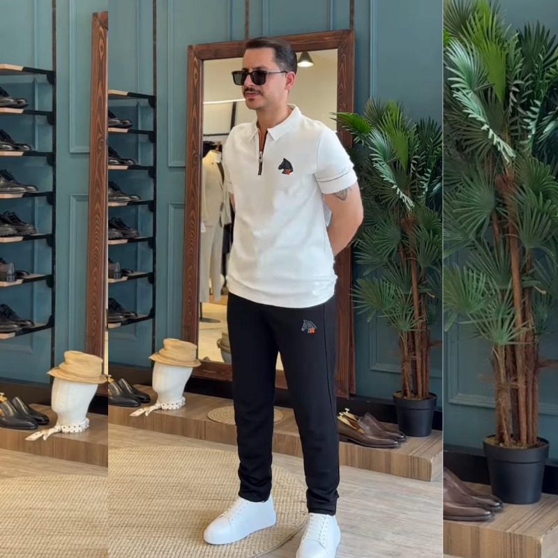 ارتقِ بإطلالتك مع هذا الطقم الرجالي الرياضي الأنيق الذي يجمع بين العصرية والراحة في تصميم واحد راقٍ.